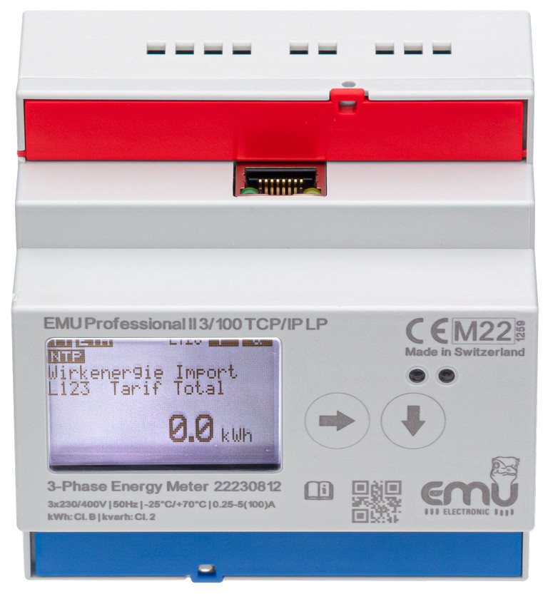 Rozhraní TCP/IP je integrováno v EMU Professional II 3/100 TCP/IP LP. Na webovém serveru lze konfigurovat parametry sítě a analyzovat aktuální naměřené hodnoty. Webové rozhraní je chráněno heslem. Připojení k síti LAN se provádí pomocí konektoru RJ45.Elektroměr EMU Professional II podporuje protokol Modbus TCP a poskytuje historická data prostřednictvím rozhraní API.